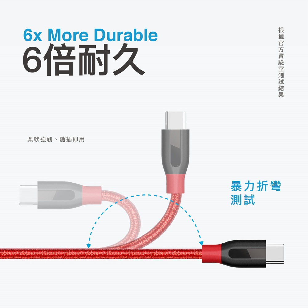 極度強韌耐磨損,PowerLine+可能是您購買的最後一條傳輸線,抗暴力彎折6千次+測試!