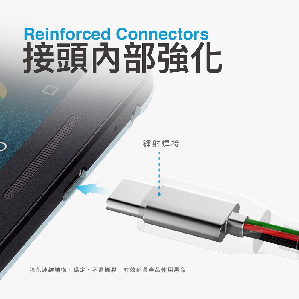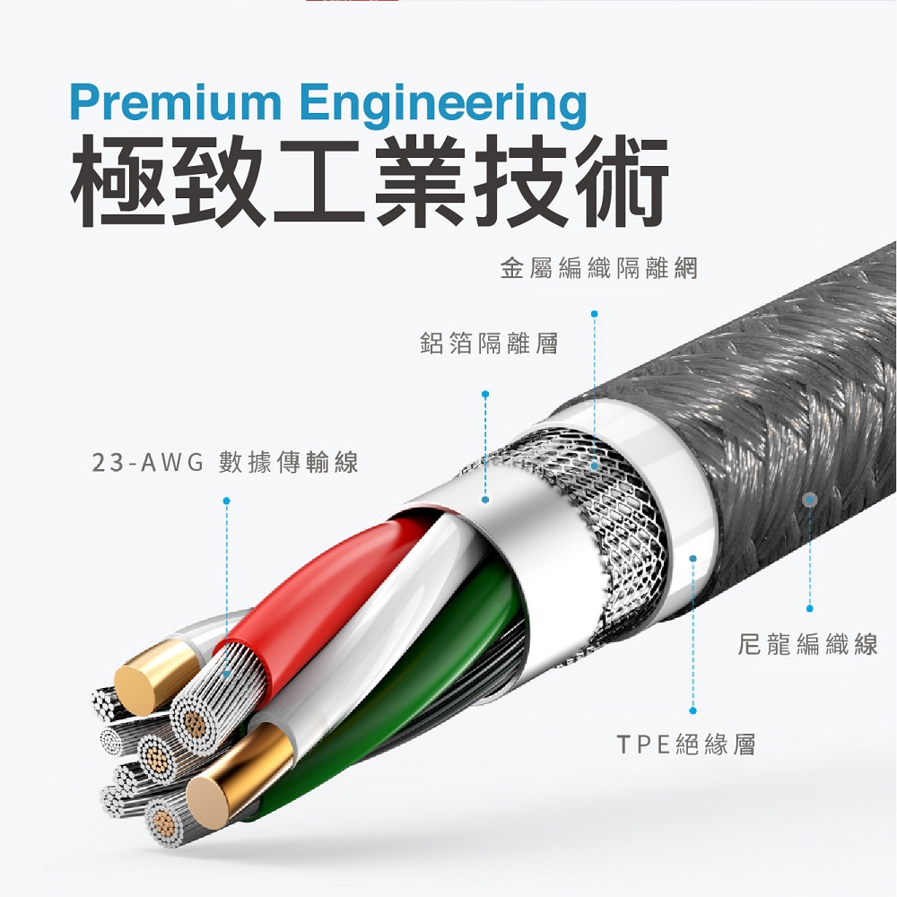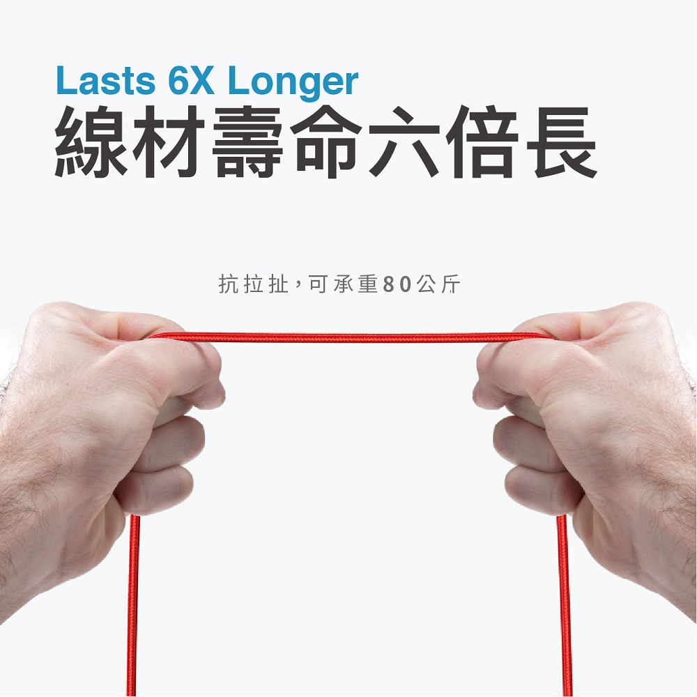 經實驗證明,線材壽命至少為他牌傳輸線的6倍、耐折損程度為一般傳輸線5倍。是最耐用、可靠的傳輸線。