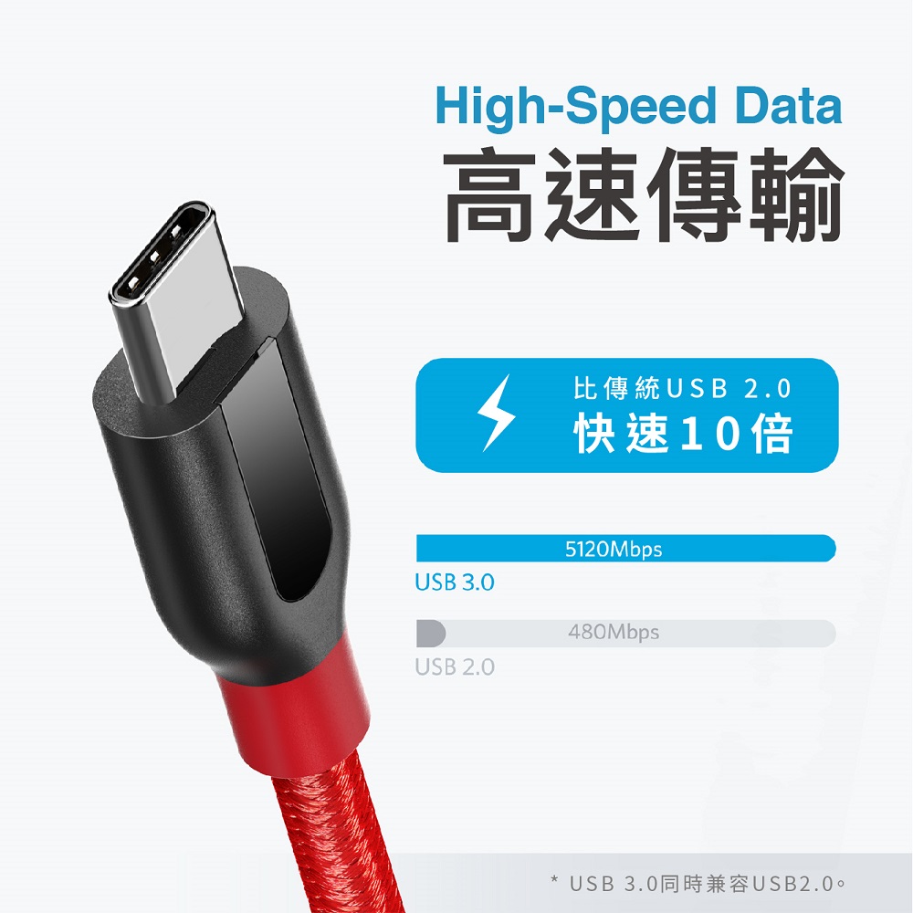 以高達5 Gbps的速度,向您的設備傳輸數據、檔案。比傳統USB 2.0 快速10倍。