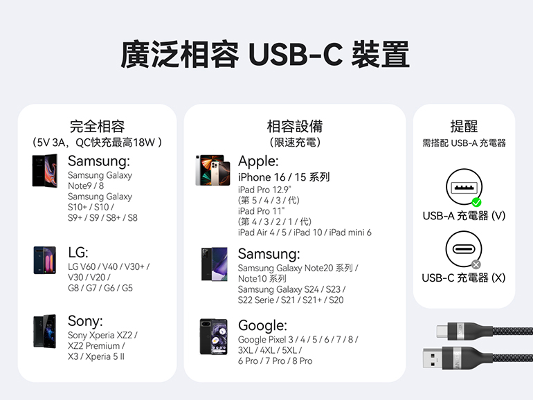 • A82G2 USB-A to Type-C 18W 超軟充電線-1.8m-黑