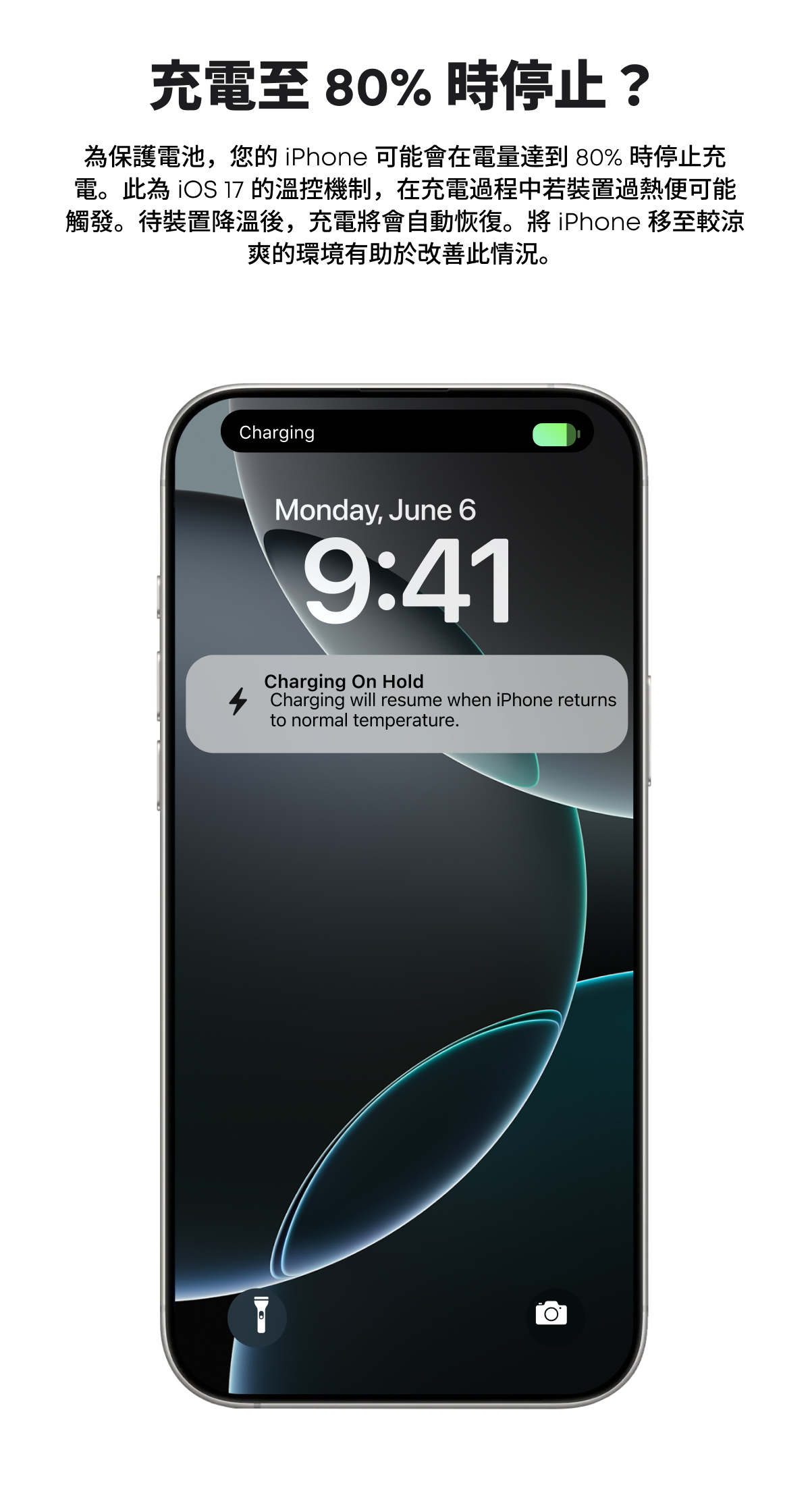 ・為防止過熱,設備充電至 80% 時可能暫停充電,待溫度下降後將自動恢復。