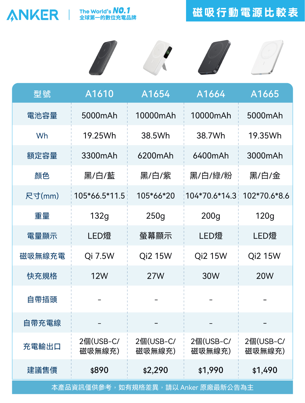 ・對 iPhone 11 或更早機型 無線充電時,最高輸出為 7.5W;Android 手機之無線充電功率依機型而異,請參考各裝置 Qi2 充電規格。